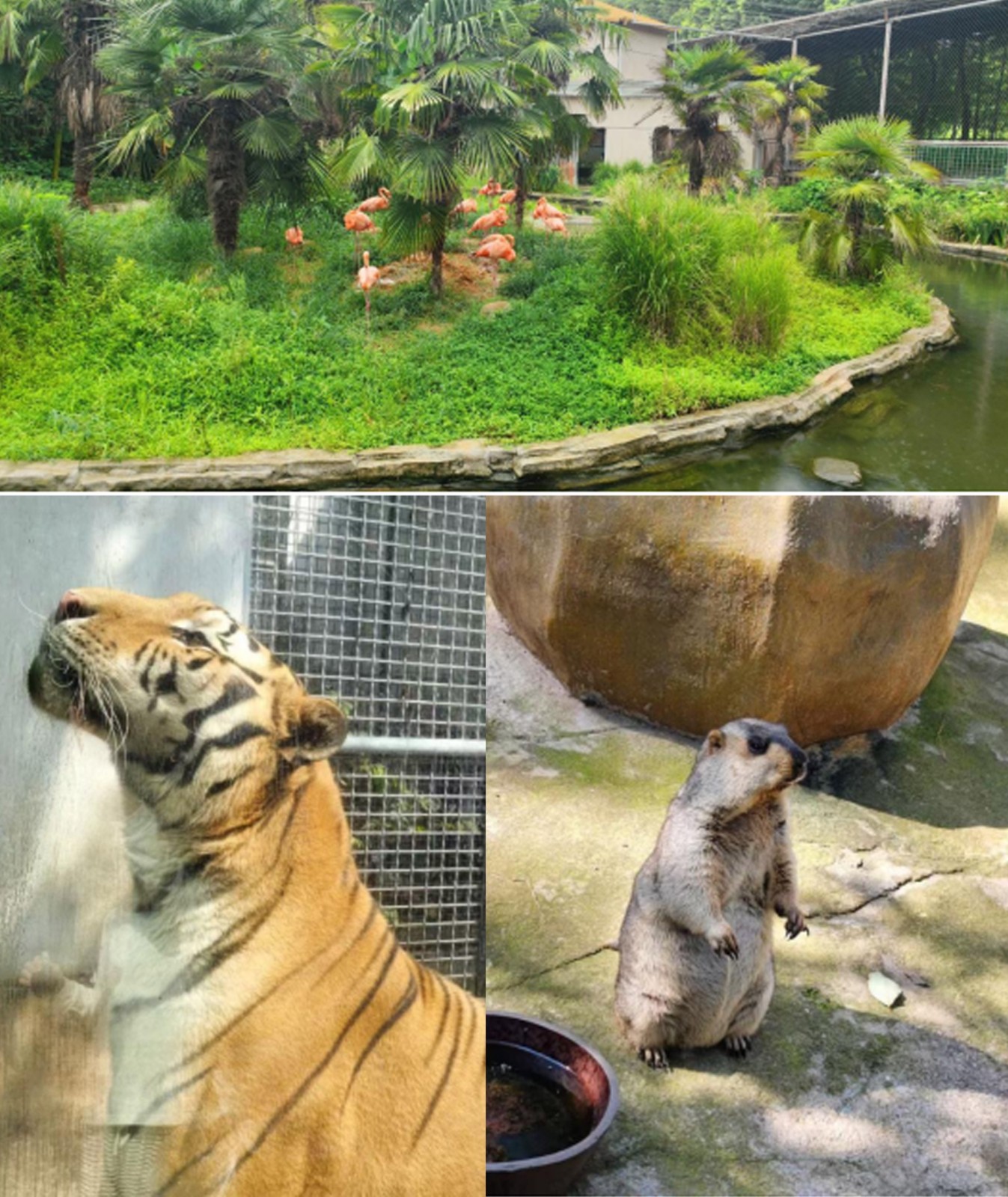 在老虎園區(qū)里,威風(fēng)凜凜的白虎和東北虎隔著籠子互相打量,時(shí)而發(fā)出低沉的吼聲交流,而另一邊的兩頭東北虎則親密地緊挨在一起打盹,斑駁的樹(shù)影灑在它們金黃的皮毛上。不遠(yuǎn)處的犀牛區(qū),兩只體型龐大的白犀牛正在上演領(lǐng)地之爭(zhēng),它們用粗壯的角互相頂撞,揚(yáng)起陣陣塵土,發(fā)出沉重的鼻息聲;非洲大羚羊區(qū)最是熱鬧,高大的羚羊們溫順地低下頭,伸著脖子吃著小朋友親手投喂的食物,長(zhǎng)長(zhǎng)的睫毛在陽(yáng)光下忽閃忽閃。樹(shù)冠間,靈巧的長(zhǎng)臂猿扒著樹(shù)干蕩著秋千,偶爾還會(huì)停下來(lái)好奇地觀(guān)察下方拍照的游客。園區(qū)主干道上,飼養(yǎng)員牽著一匹可愛(ài)的袖珍小馬漫步,珍珠馬的脖子上系著的鈴鐺隨著步伐發(fā)出清脆的聲響。整個(gè)園區(qū)洋溢著人與動(dòng)物和諧相處的氛圍。