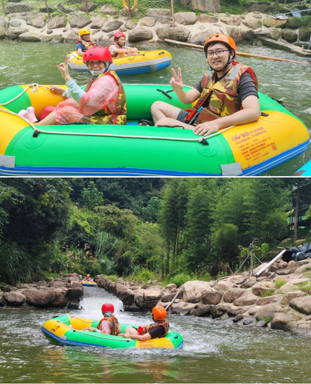 小伙伴們換上裝備,踏進(jìn)皮筏,兩兩一隊(duì),水瓢、水槍齊上陣,小伙伴們瞬間化身“漂流勇士”,寧?kù)o的河道霎時(shí)間成為潑水狂歡的戰(zhàn)場(chǎng),歡聲笑語(yǔ)與水花四濺交織在一起。清涼的溪水驅(qū)散了夏日的燥熱,激烈的“對(duì)戰(zhàn)”更點(diǎn)燃了團(tuán)隊(duì)的活力與激情,一場(chǎng)?酣暢淋漓的夏日消暑大戰(zhàn)?讓大家徹底放飛自我,拉近了彼此距離,也為第一天的行程注入了無(wú)限活力。
